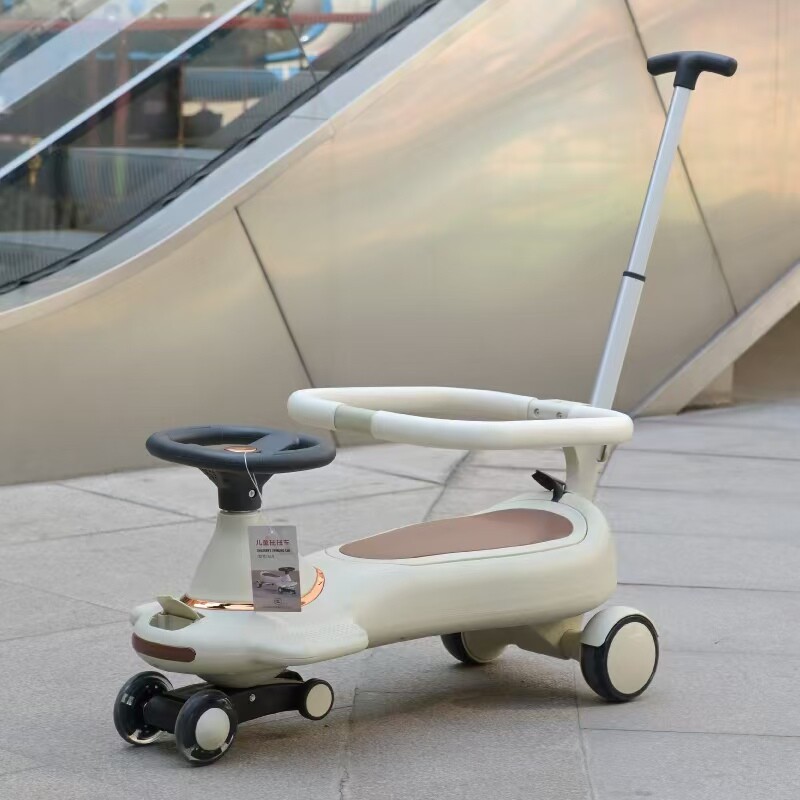 Plus the stable big golden tower safety system, the baby can twist and play by himself and solve the two major needs of exercise and play. This toy car is equipped with a hidden pull rope for more convenient travel, one-button switch dynamic music, cool lights, enlarged rear wheel 120mx40m double bearing super large self-luminous power-free tires, and durable for various road surfaces. The one-button retractable aluminum alloy push handle can be adjusted in 4 gears. It is more labor-saving to walk the baby without bending over. The non-slip hand steering wheel is equipped with a thick aluminum alloy shaft to rotate flexibly and freely to prevent rollover. The enlarged storage box can hold the baby's water cup, and other functions. . . .